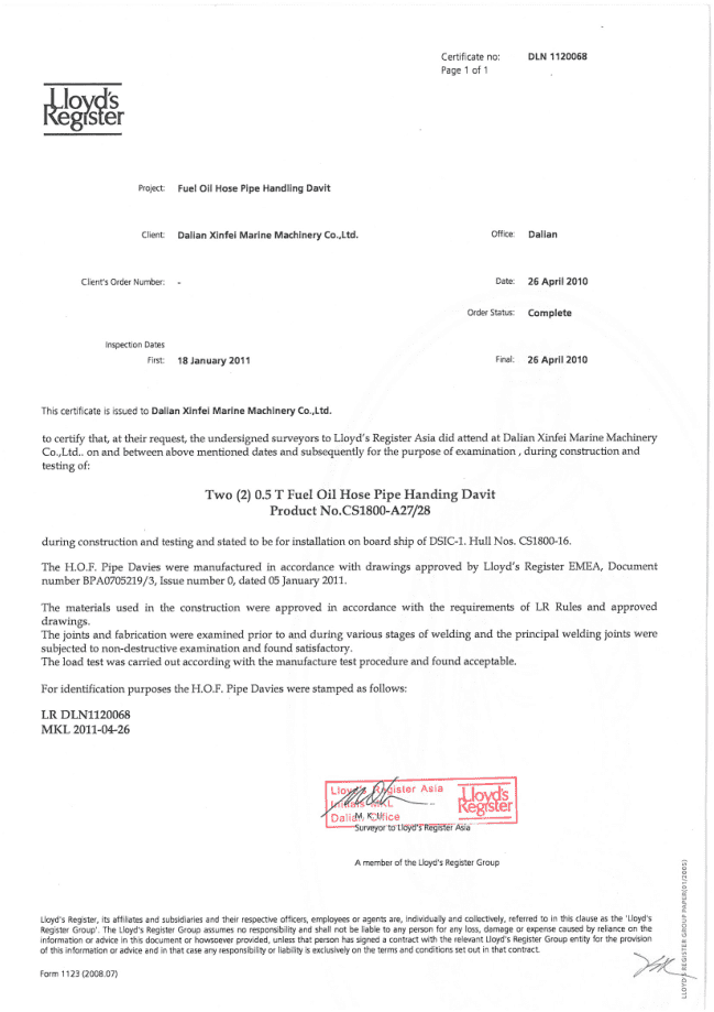 Dalian Xinfei Marine Machinery Co., Ltd.
